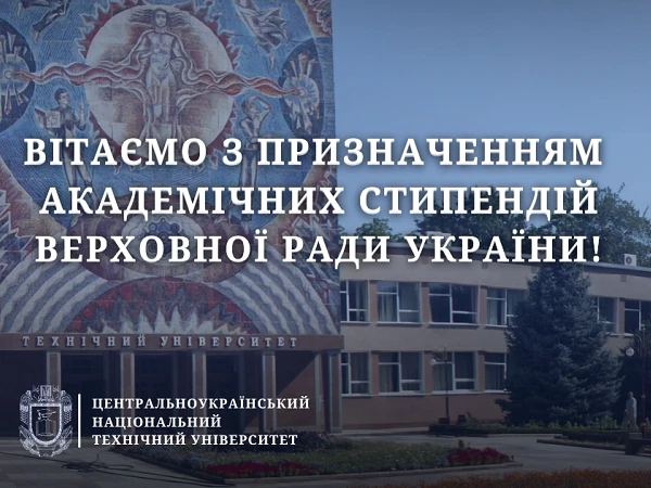 Стипендії Верховної Ради України для здобувачів вищої освіти Центральноукраїнського національного технічного університету продовжено на другий навчальний семестр 2025–2026 навчального року.