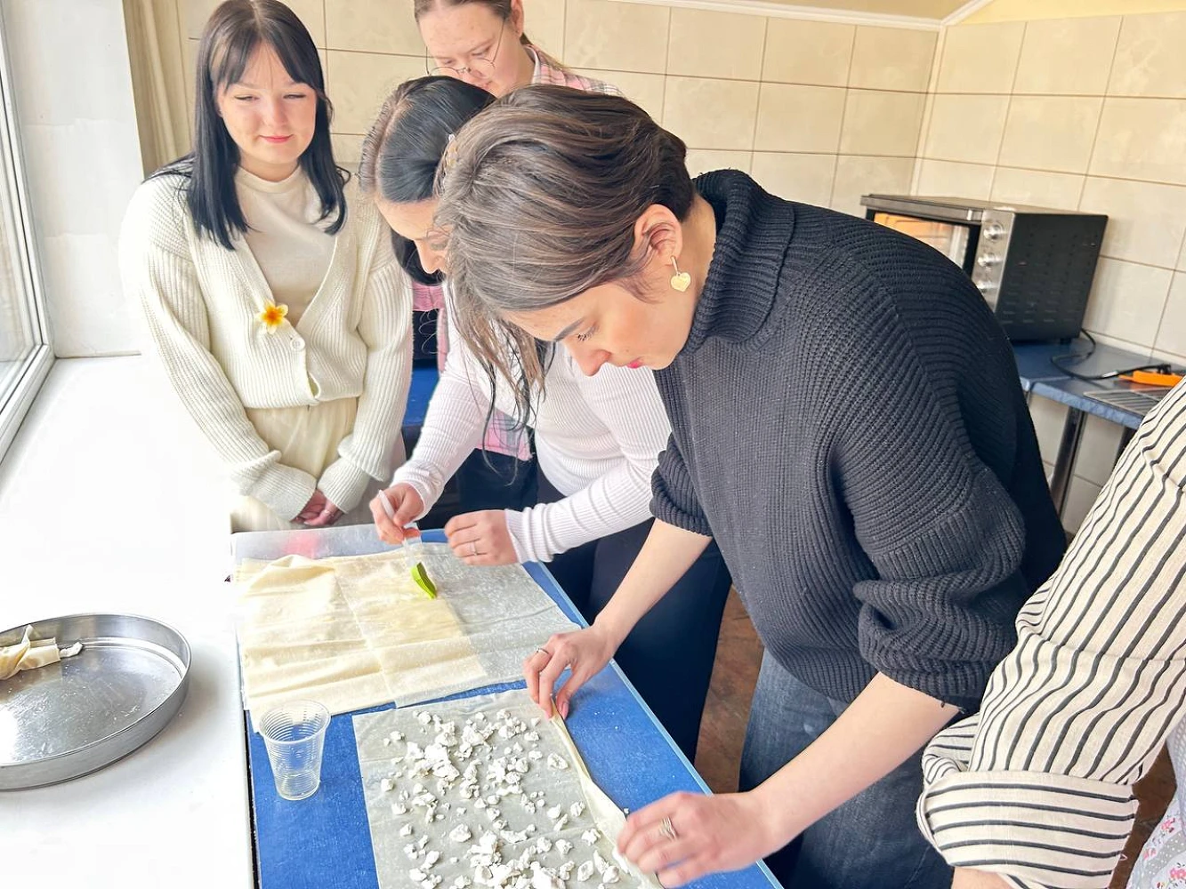 Особливою частиною зустрічі стала гастрономічна локація: здобувачі спеціальності готельно-ресторанної справи здійснили випікання традиційної болгарської страви — банниці, поєднавши кулінарні традиції з професійними навичками, після чого разом із гостями долучилися до її дегустації.
