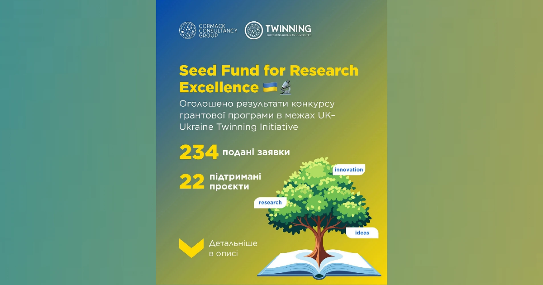 За результатами конкурсного відбору, в якому було подано 234 заявки з різних країн світу, до фінансування відібрано лише 22 проєкти. Проєкт Центральноукраїнського національного технічного університету TWIN-MENTOR (CUNTU-UNC Twinning Mentorship Network) увійшов до числа найкращих, підтвердивши високий рівень наукового потенціалу університету та його здатність до ефективної міжнародної співпраці.