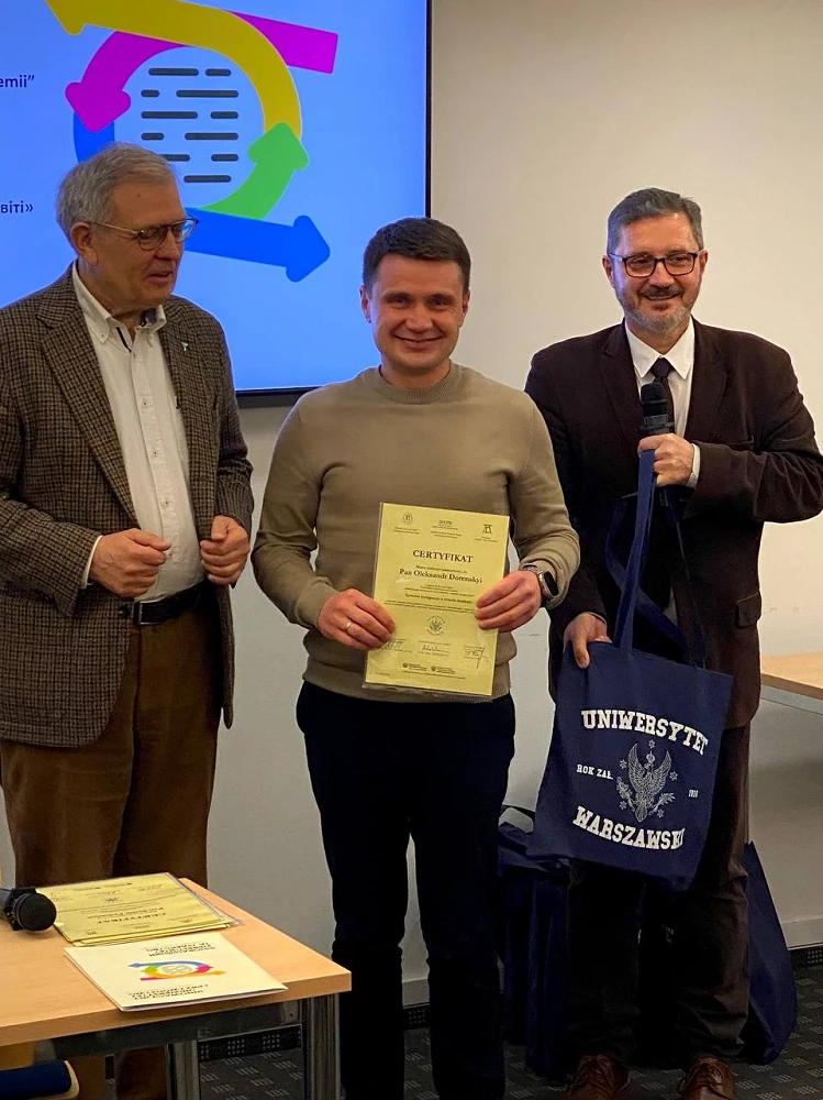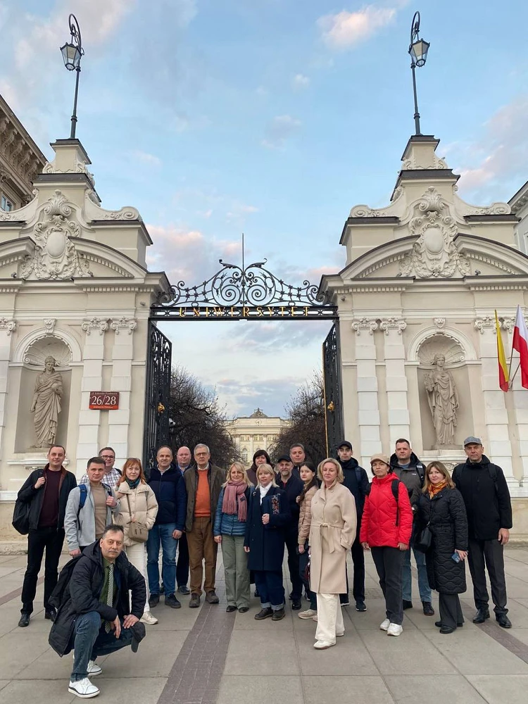 16–27 березня в м. Варшава на базі факультету «Artes Liberales» Варшавського університету (Uniwersytet Warszawski) відбулась основна сесія проєкту, під час якої практичний досвід і досягнення ЄС та Польщі щодо застосування технологій ШІ в освіті й науці представили: проф. Пшемислав Кордос і д-р Ева Гуз – ШІ-інновації у Варшавському університеті; д-р Кшиштоф Сконєчни – підходи застосування штучного інтелекту у діяльності польських науковців; д-р Емілія Качмарек – етика використання ШІ в академічній сфері; проф. Томаш Шапіро, проф. Вікторія Гурочкіна, проф. Вікторія Яновська – методи ШІ в практиці польського сектору науки та вищої освіти; проф. Аркадіуш Орловський і Пйотр Мачуга – ШІ у Варшавському університеті природничих наук.