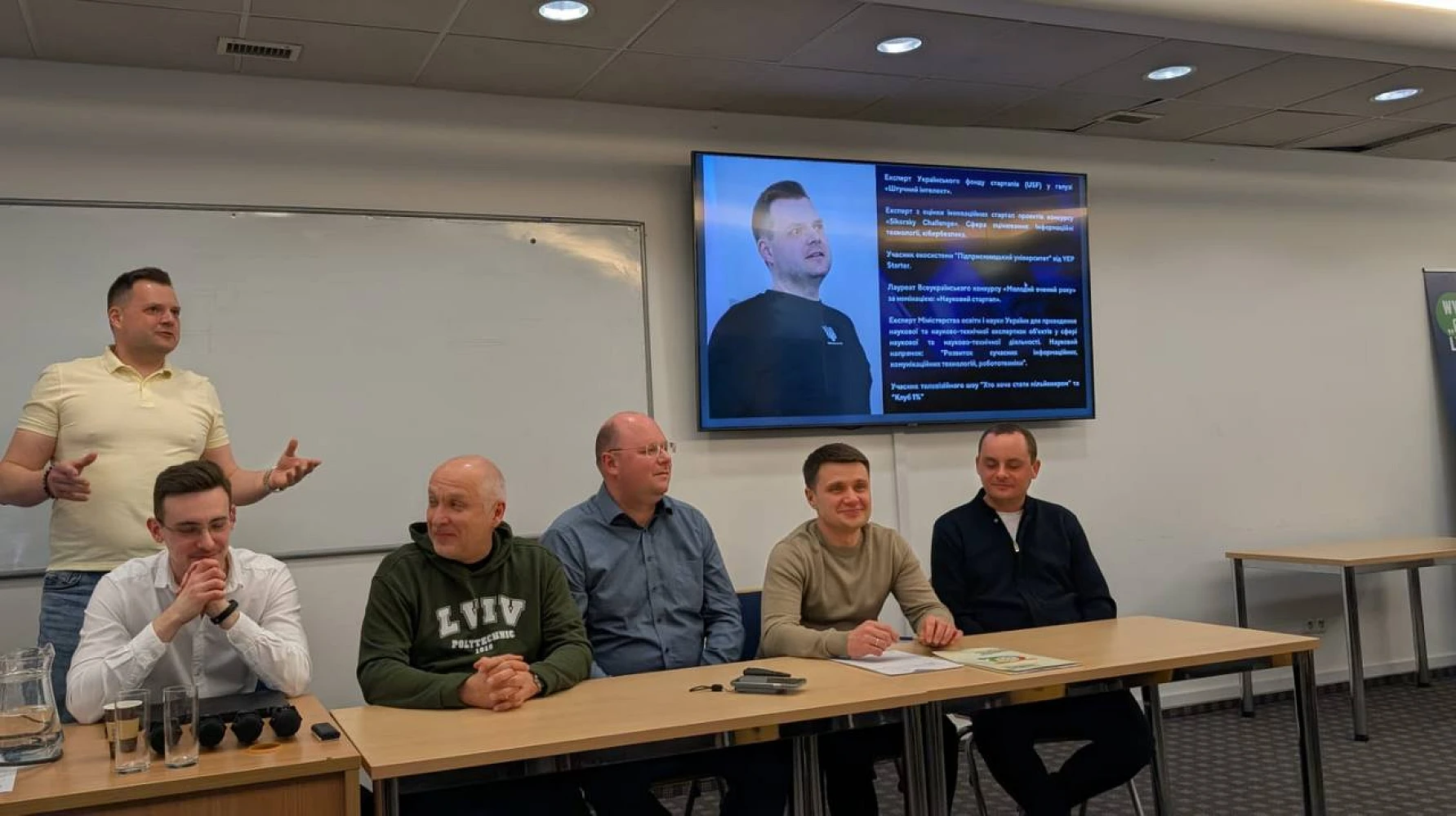 Разом з польськими колегами здобутками поділилися представники України: голова експертно-консультаційного комітету з розвитку ШІ в Україні при Мінцифрі Олексій Молчановський представив стратегічні напрями розвитку ШІ в Україні; практики кар’єрного розвитку науковців, доброчесного використання засобів генеративного штучного інтелекту висвітлили Ірина Дегтярьова, проректорка з наукової роботи Бердянського ДПУ проф. Яна Сичікова, професор Сумського ДУ д-р Артем Артюхов та доцент ХАІ Дмитро Чумаченко; стратегічні підходи до розвитку системи вищої освіти та ролі ШІ у формуванні нової моделі університетського управління й наукової діяльності презентував Генеральний директор Директорату вищої освіти та освіти дорослих МОН України Олег Шаров.