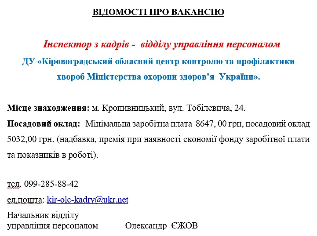 - інформування студентів і випускників про наявність вакантних місць, що відповідають їх фаховій підготовці;